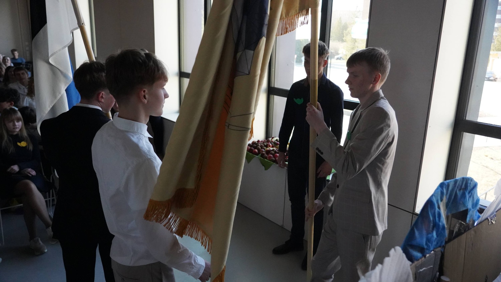 Õhtujuhid Theresa ja Karl avasid sündmuse mõttega, et ees ei oota mitte mõõkadega võitlus, vaid lahing täis mälestusi, mängulusti ja meeskonnavaimu. Lõpetajaid tervitas direktor Anne Endjärv, julgustades noori viimaseks pingutuseks enne eksameid. Lavale astusid ka kooli kõige nooremad – 1. klass luuletusega ja 2. klass lauluga “Musta kassi tango”.